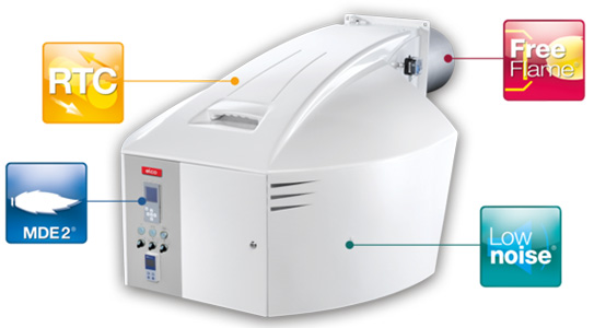 用于清油和雙燃料燃燒器,F(xiàn)ree Flame煙氣內(nèi)循環(huán)燃料快速氣化;當燃油氣化,它被控制在燃燒頭外30厘米的位置開始穩(wěn)定燃燒。
